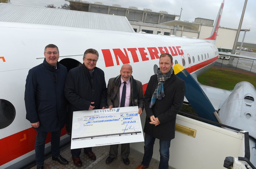 Thomas Coburger übergab den REVITALIS-Scheck in Höhe von 5.000 Euro an Dr. Winfried Wehrstedt vom Förderverein Spielplatz der Generationen in Erfurt e.V. Das fliegende Klassenzimmer ist ein innovativer Erlebnisraum in einer alten IL-18 zur Vermittlung komplexer Umweltzusammenhänge. Es steht allen Schulen Thüringens zur Verfügung und wird dauerhaft am Erfurter Flughafen betrieben.