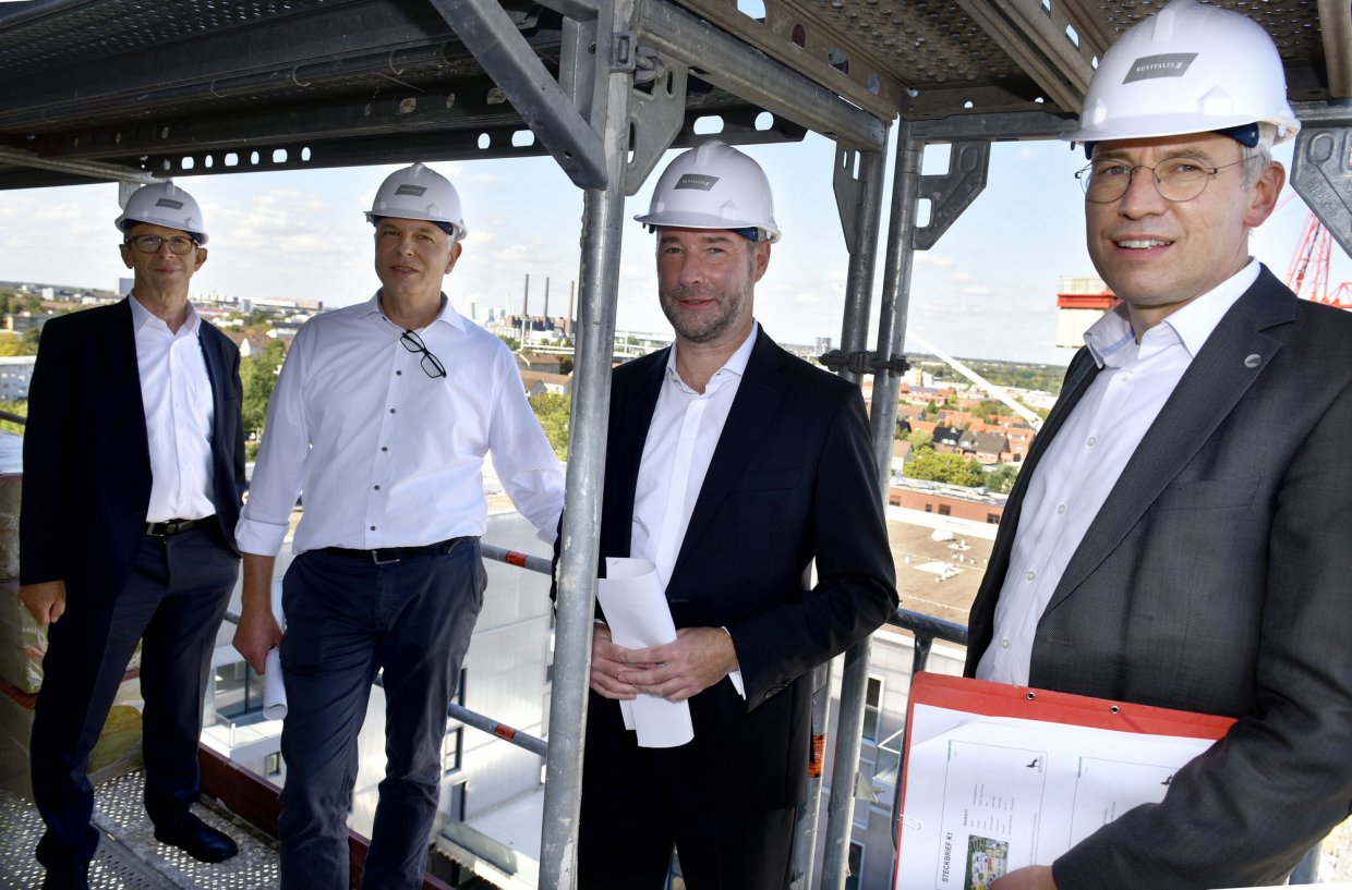 Vom fantastischen Blick über die Stadt Wolfsburg überzeugte sich jetzt auch Oberbürgermeister Klaus Mohrs bei der Rohbaubegehung.