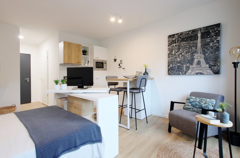 Alle 365 Apartments im Dortmunder Kreuzviertel sind voll möbliert und haben helle, freundliche Räume. In die funktionalen Grundrisse sind Möbel in modernem Design integriert. Die zukünftigen Bewohner können aus drei verschiedenen Größenmodellen wählen: SMALL, MEDIUM und LARGE. Für jede Größe wurde jeweils ein Musterapartment eingerichtet, das jetzt bequem vom Laptop zuhause oder vom Smartphone unterwegs besucht werden kann.